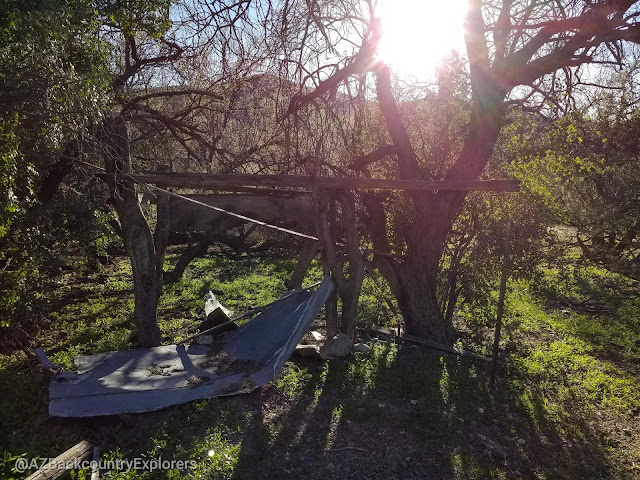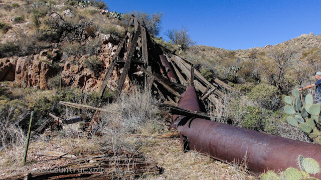 The Hozoni Ranch historically housed the water collection system and was the beginning of a pipeline to Copperopolis. The abandoned pipeline provided water for copper mining in the area and can still be seen from Google Earth. Eventually, the trail heads south and descends into Copperopolis Wash, where we will find our next stop.