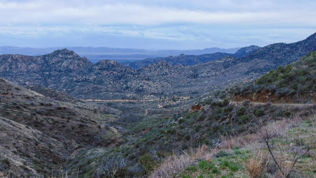 Soon, we passed Castle Rock and the Oro Belle mine, then climbed up the switchback. As we rounded Watson Peak, we got the best views along the trail. From there, you can see Lake Pleasant to the south and Vulture Peak to the southwest. Bradshaw City is just 2 miles ahead, near the end of our route.