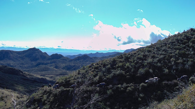 We conquered every obstacle as we climbed higher into the Bradshaw Range. Soon, we reached Burro John and Fort Misery, where we encountered Humbug Creek for the second time. It proved to be a challenge for the little Ford Explorer in the group, as it struggled to maneuver over the slippery rocks. However, with the help of a winch line, we were able to give it a little tug and get it up and over the boulders hidden beneath the water. Despite the challenges, it was a valiant effort for the $400 Ford Explorer.