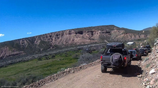 The road is maintained and good for 2WD vehicles during dry conditions. Our only obstacle along this trail is Tonto Creek. The creek was running strong and our first attempt was unsuccessful. The water was way too deep and nobody wanted to go swimming. We decided to scope out the water crossing near Tonto Basin. I knew myself, the Tonto Basin water crossing was much more fat and spread out. We would have a better chance of successfully fording the river.
