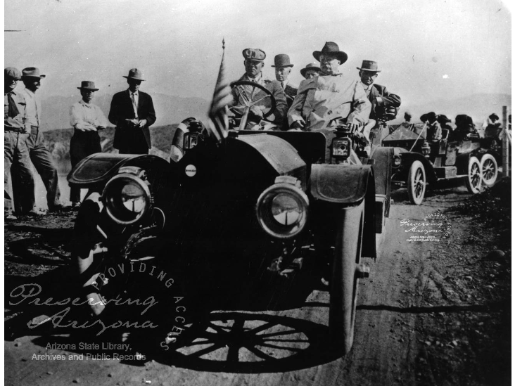 Theodore Roosevelt en route to the dedication ceremony of the Tonto Dam.